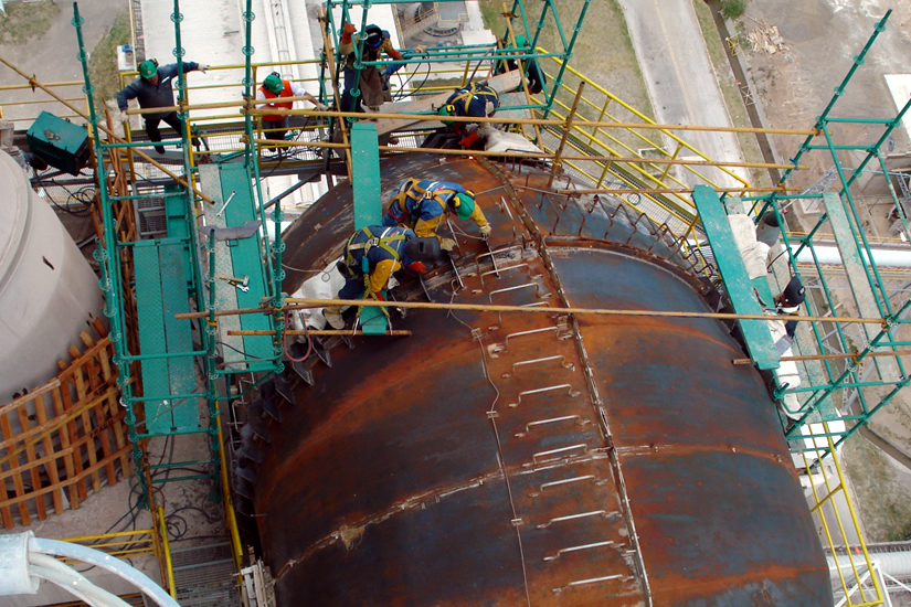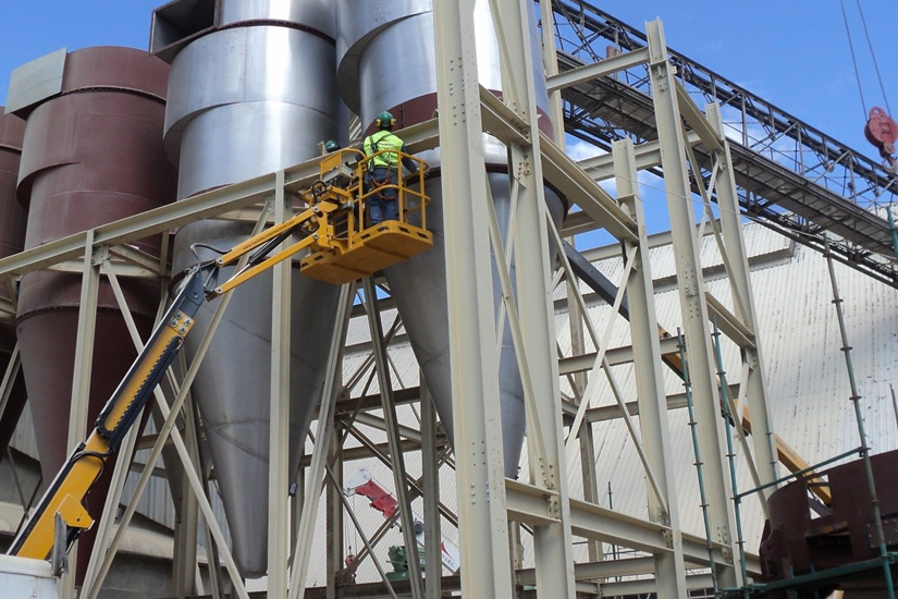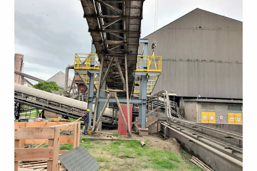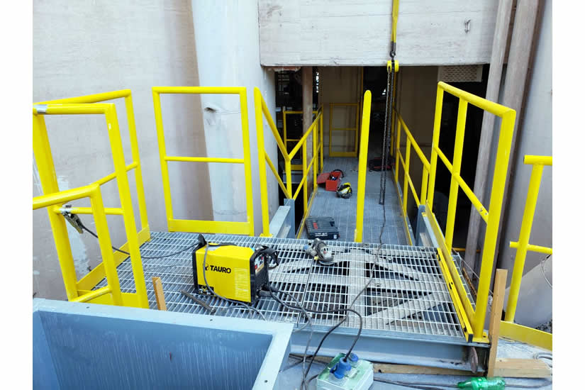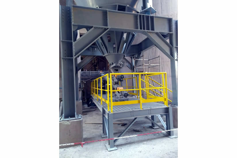 Montaje sistema de dosificación de polvo (pasarelas, plataformas, tornillo de dosificación, aero deslizadores, tolva y chutes de descarga ducto de dosificación, base de silo dosificador, silo dosificador, compresor, pipin, sistema fluidificación, entre otros)